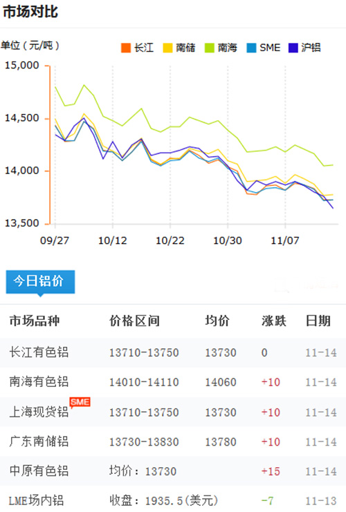 鋁錠價(jià)格今日鋁價(jià)2018-11-14