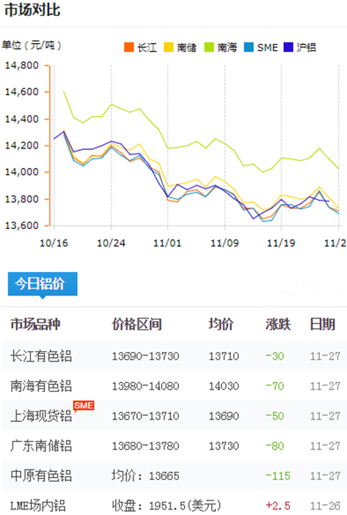 鋁錠價(jià)格今日鋁價(jià)2018-11-27