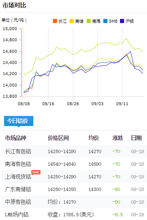 鋁錠價(jià)格今日鋁價(jià)2019-09-19