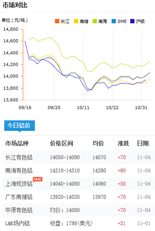 鋁錠價(jià)格今日鋁價(jià)2019-11-04