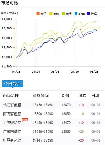 鋁錠價(jià)格今日鋁價(jià)2020-06-01