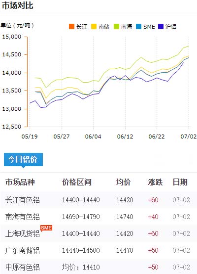 鋁錠價格今日鋁價2020-07-02