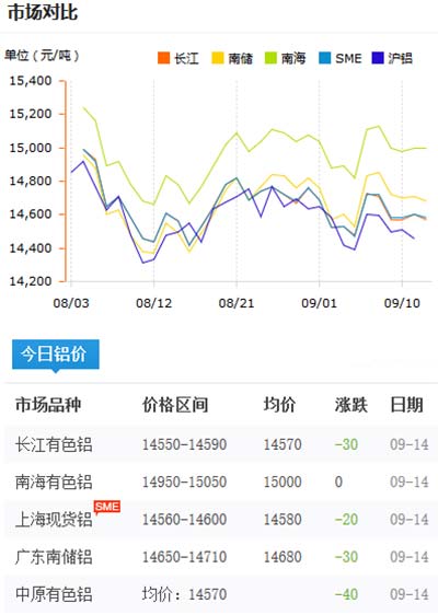 鋁錠價(jià)格今日鋁價(jià)2020-09-14