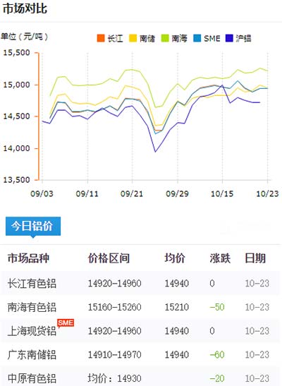 鋁錠價格今日鋁價2020-10-23