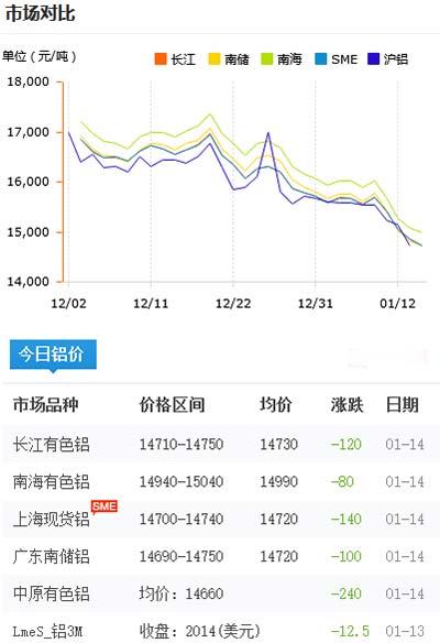 鋁錠價(jià)格今日鋁價(jià)2021-01-14