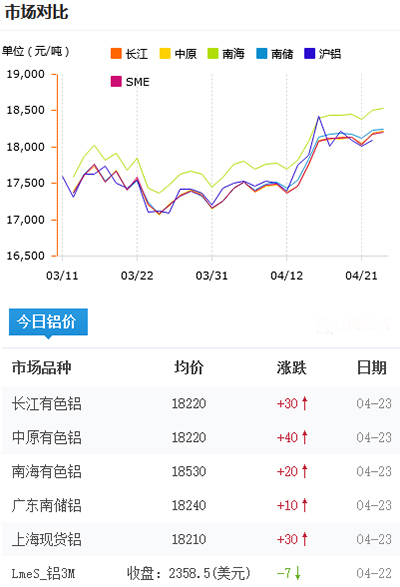 鋁錠價格今日鋁價2021-04-23