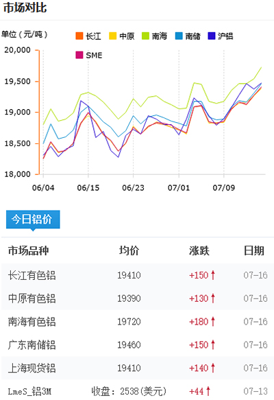 鋁錠價(jià)格今日鋁價(jià)2021-07-16