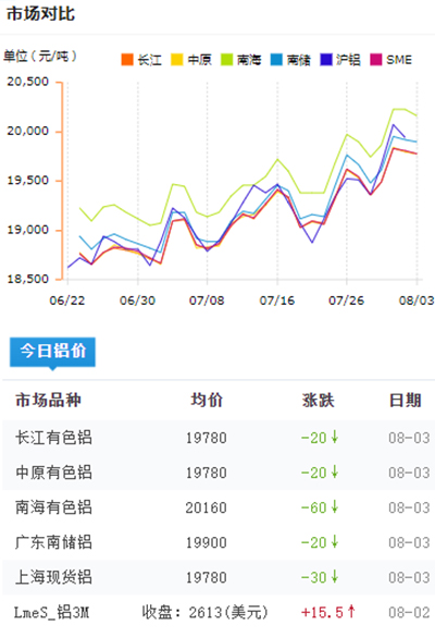 鋁錠價(jià)格今日鋁價(jià)2021-08-03