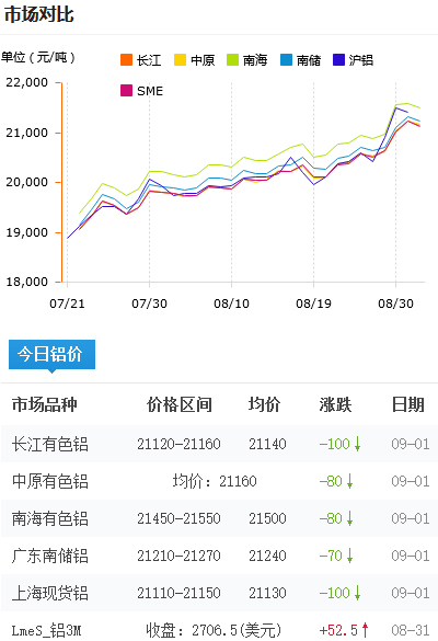 鋁錠價(jià)格今日鋁價(jià)2021-09-01