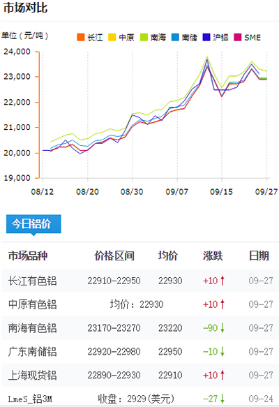 鋁錠價(jià)格今日鋁價(jià)2021-09-27