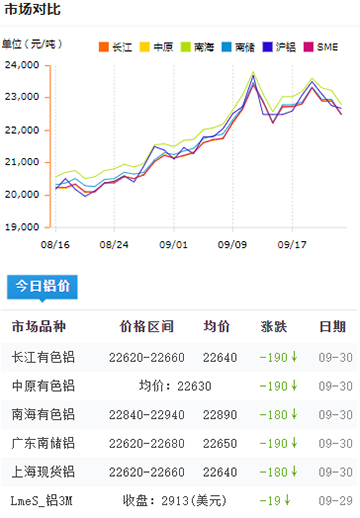 鋁錠價(jià)格今日鋁價(jià)2021-09-30