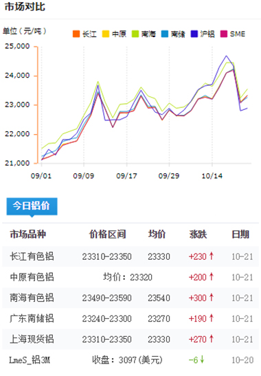鋁錠價(jià)格今日鋁價(jià)2021-10-21