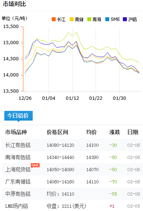 鋁錠價格今日鋁價2018-2-6