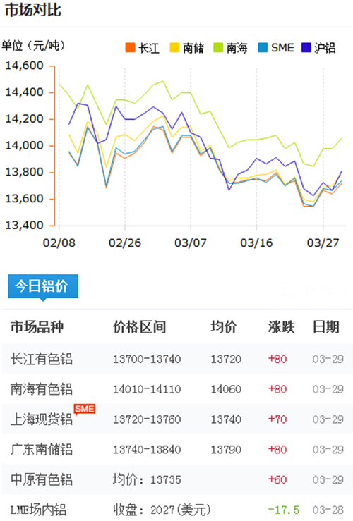 鋁錠價(jià)格今日鋁價(jià)2018-3-29