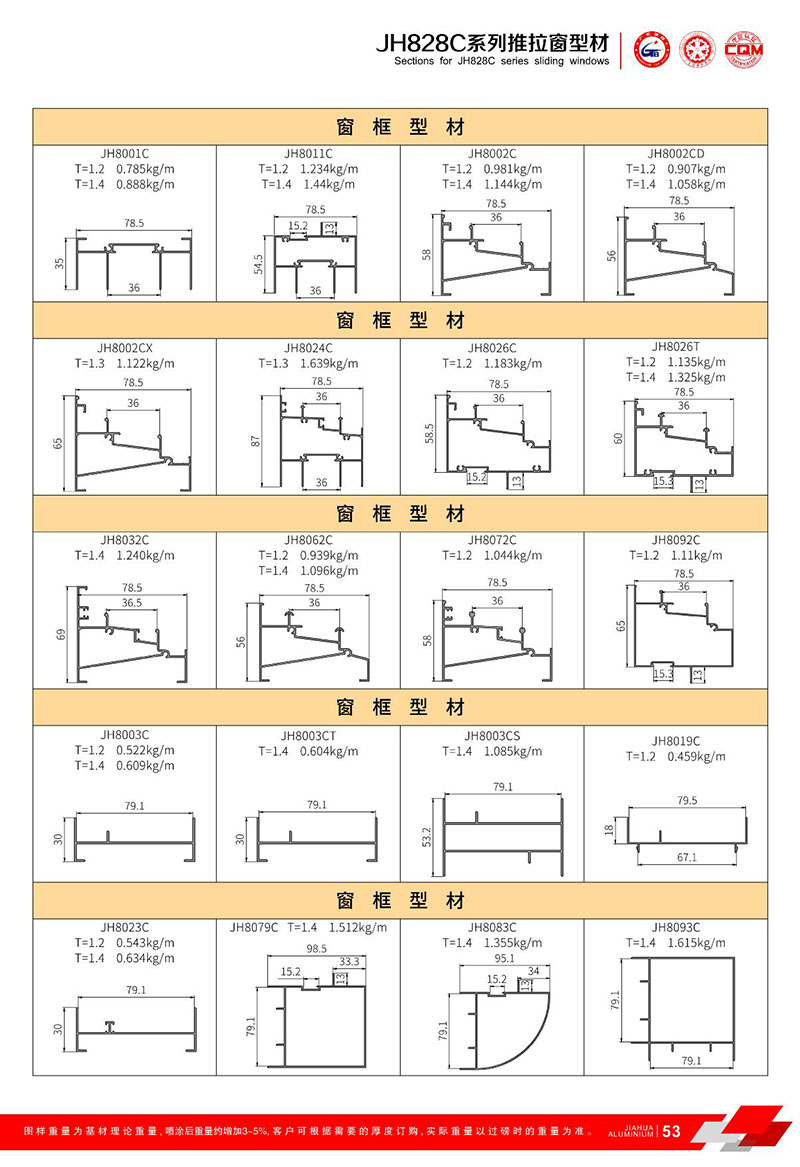 推拉窗系列 平開窗系列 平開門系列 斷橋隔熱系列 幕墻系列 通用型材系列