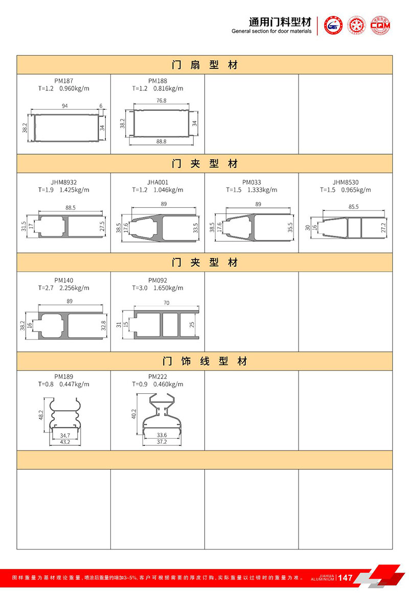 推拉窗系列 平開窗系列 平開門系列 斷橋隔熱系列 幕墻系列 通用型材系列