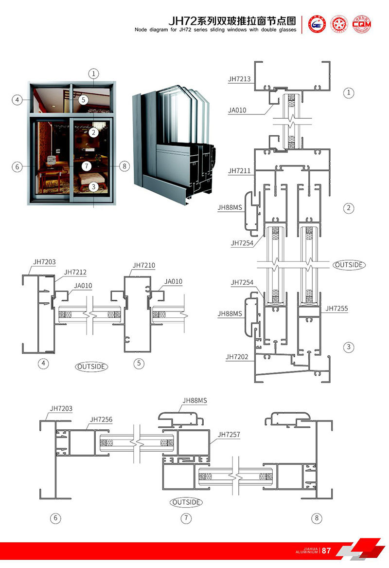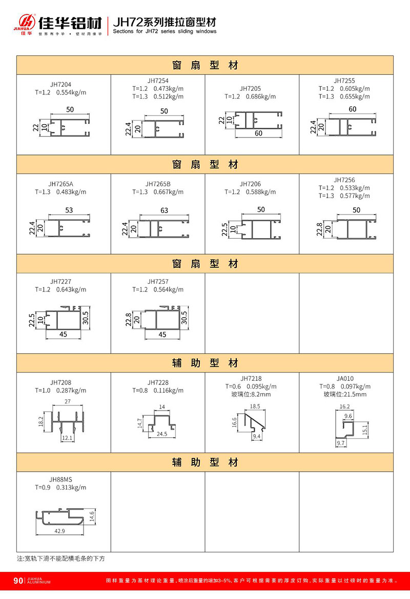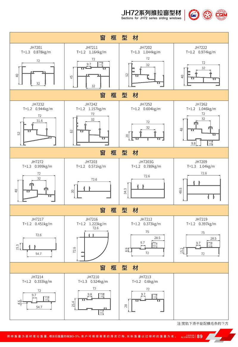 推拉窗系列 平開窗系列 平開門系列 斷橋隔熱系列 幕墻系列 通用型材系列